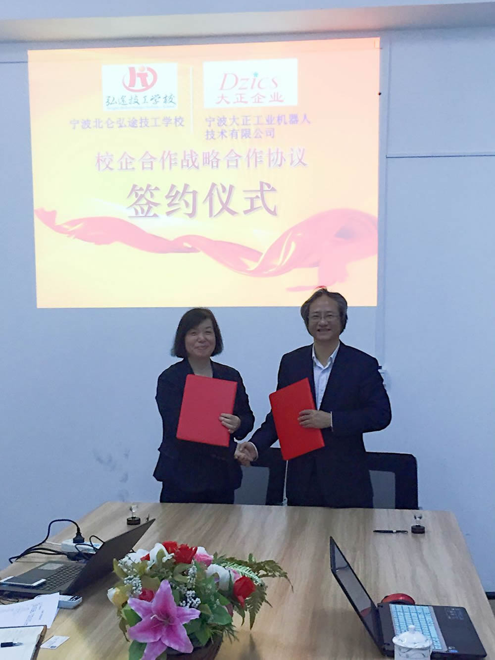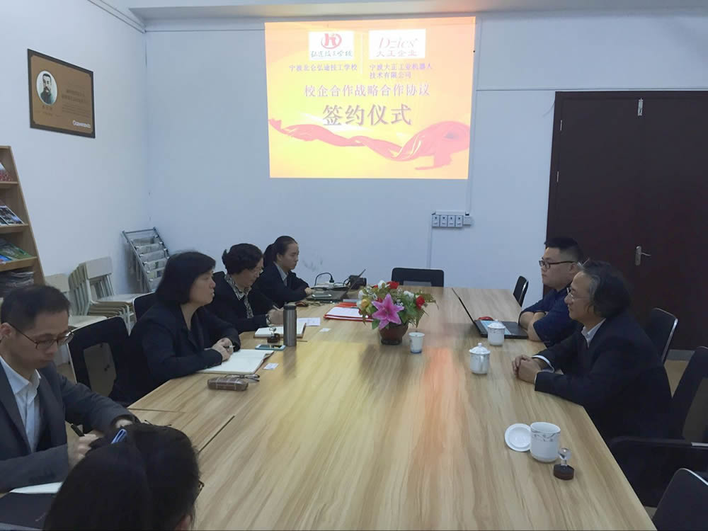 寧波大正工業機器人技術有限公司與北侖弘途技工學校簽訂校企合作協議